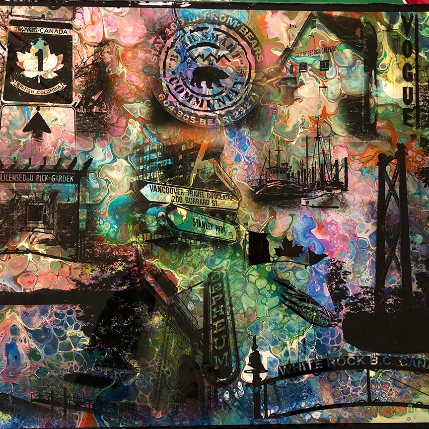 I am pictured above with ‘Staycation’. This piece was chosen as part of the Arts 2019 Exhibition at the Surrey Art Gallery. I was proud and honoured that it received Third Place in the category of Drawing, Mixed Media, and Print Making on Paper.