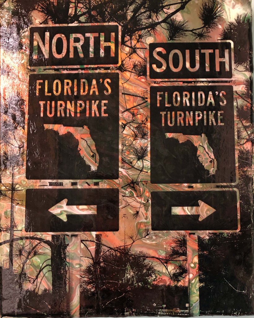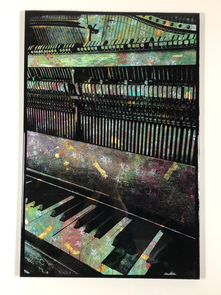 Hi there! My name is Noemi Paterson and I love creating mixed media pieces. I start with a blank canvas and then proceed with an acrylic paint pour. From there, I take one of my photographs to create an image transfer. To finish it off, I cover the canvas in an epoxy resin.